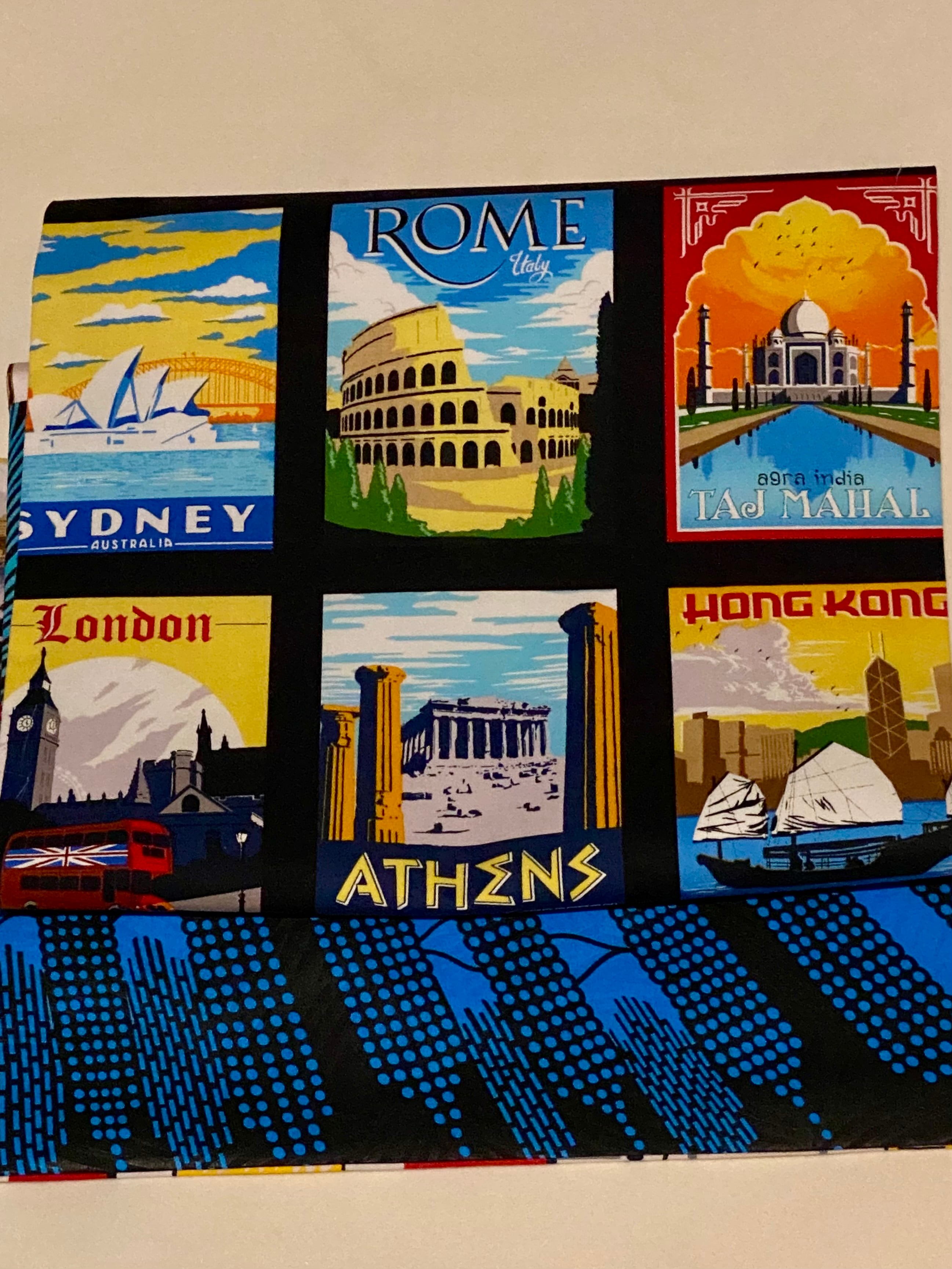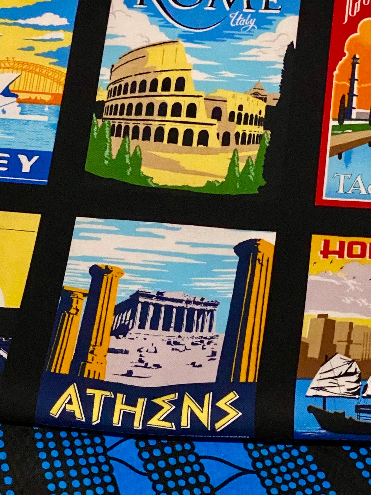 世界のいろいろな街のポストカードを集めたようなリバーシブル名古屋帯です。シドニー、ローマ、ロンドンもあります♫