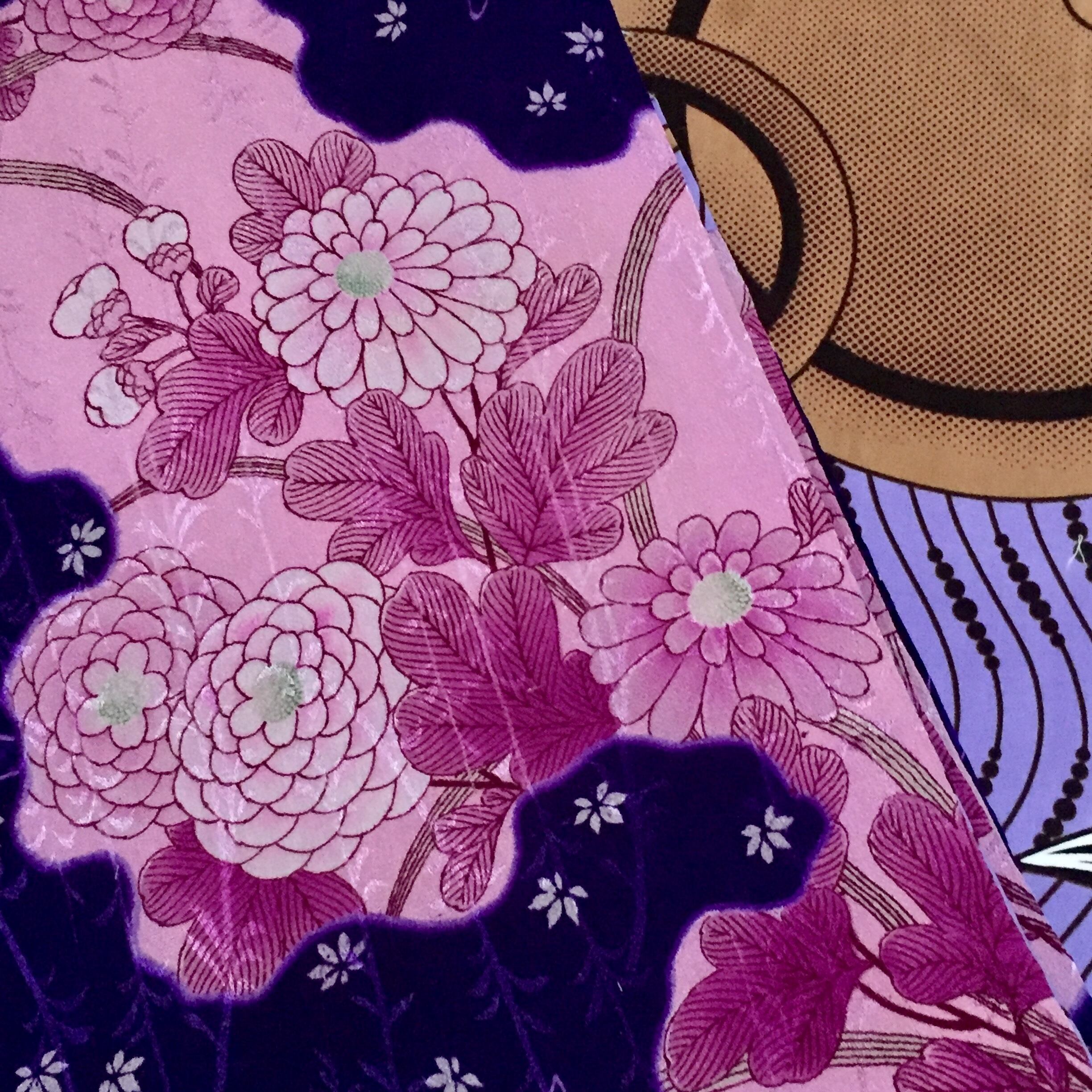 お太鼓裏、前帯一巻き目は薄紫のチューリップのアフリカンバティックです。