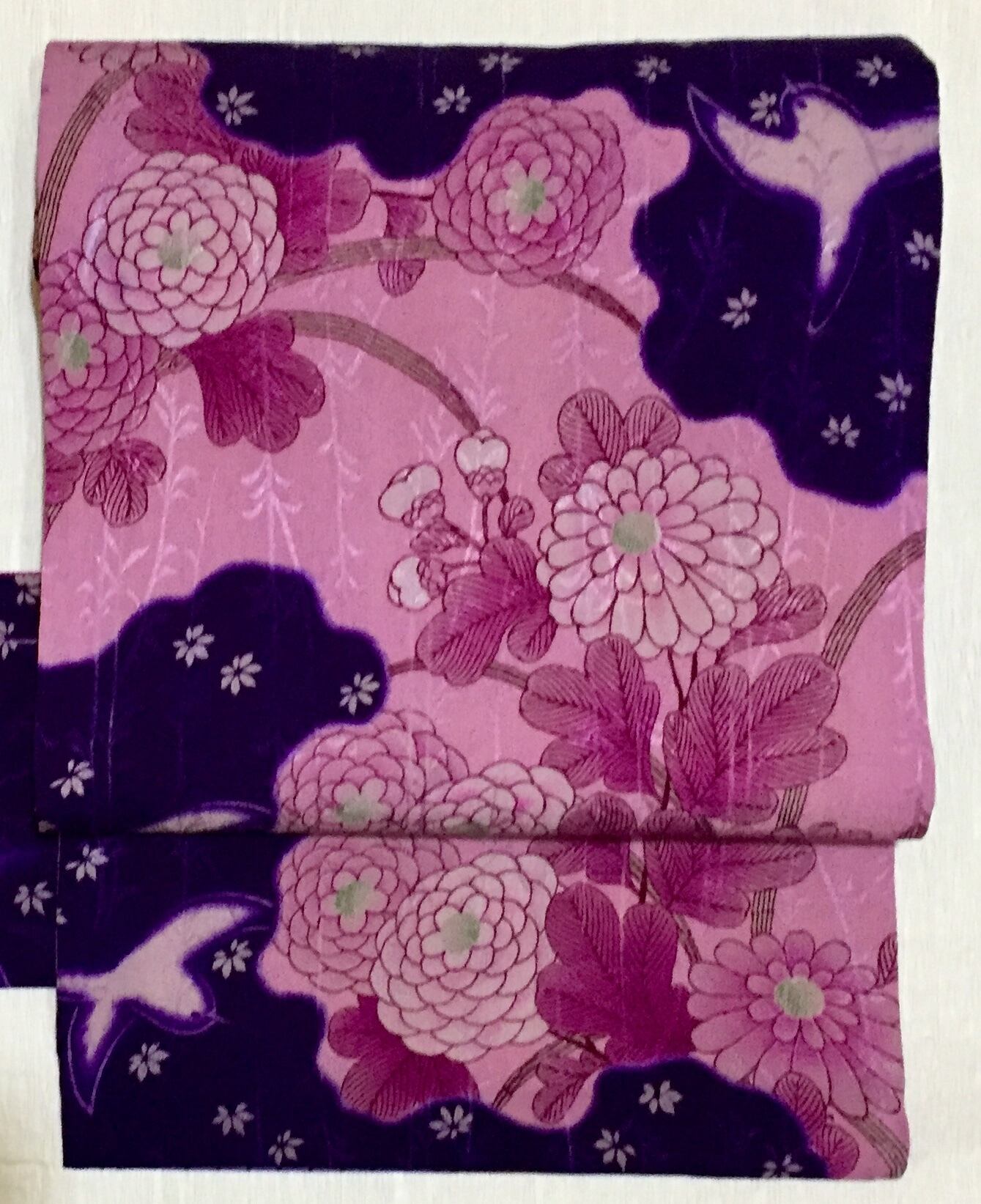 ロマンティックな雰囲気の縮緬を名古屋帯に仕立てました。
