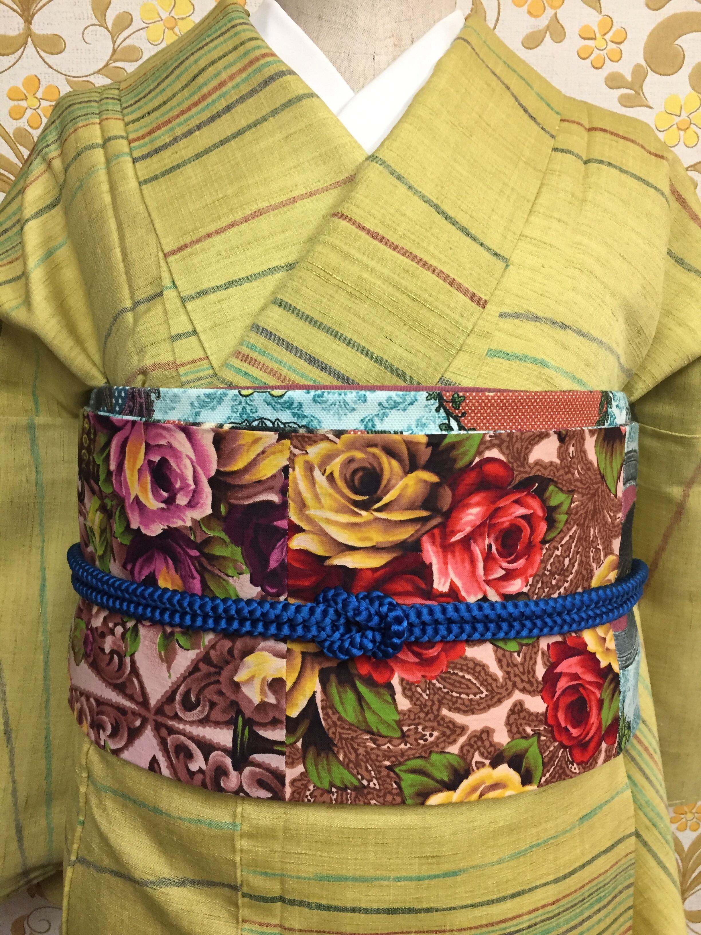 レトロな雰囲気の薔薇模様の柄見本を組み合わせた名古屋帯です。