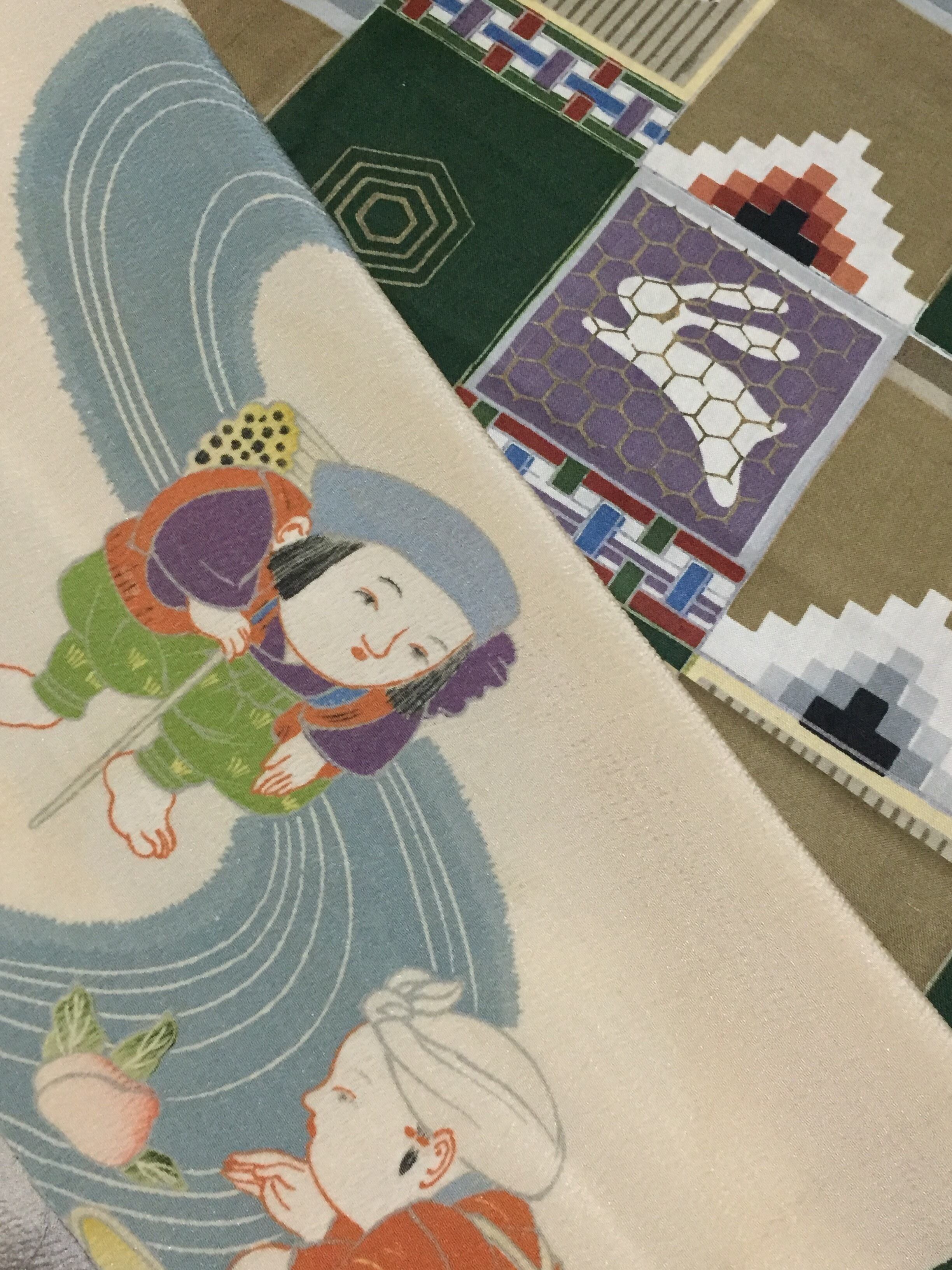 裏は市松にウサギや亀甲模様の布をあわせました。