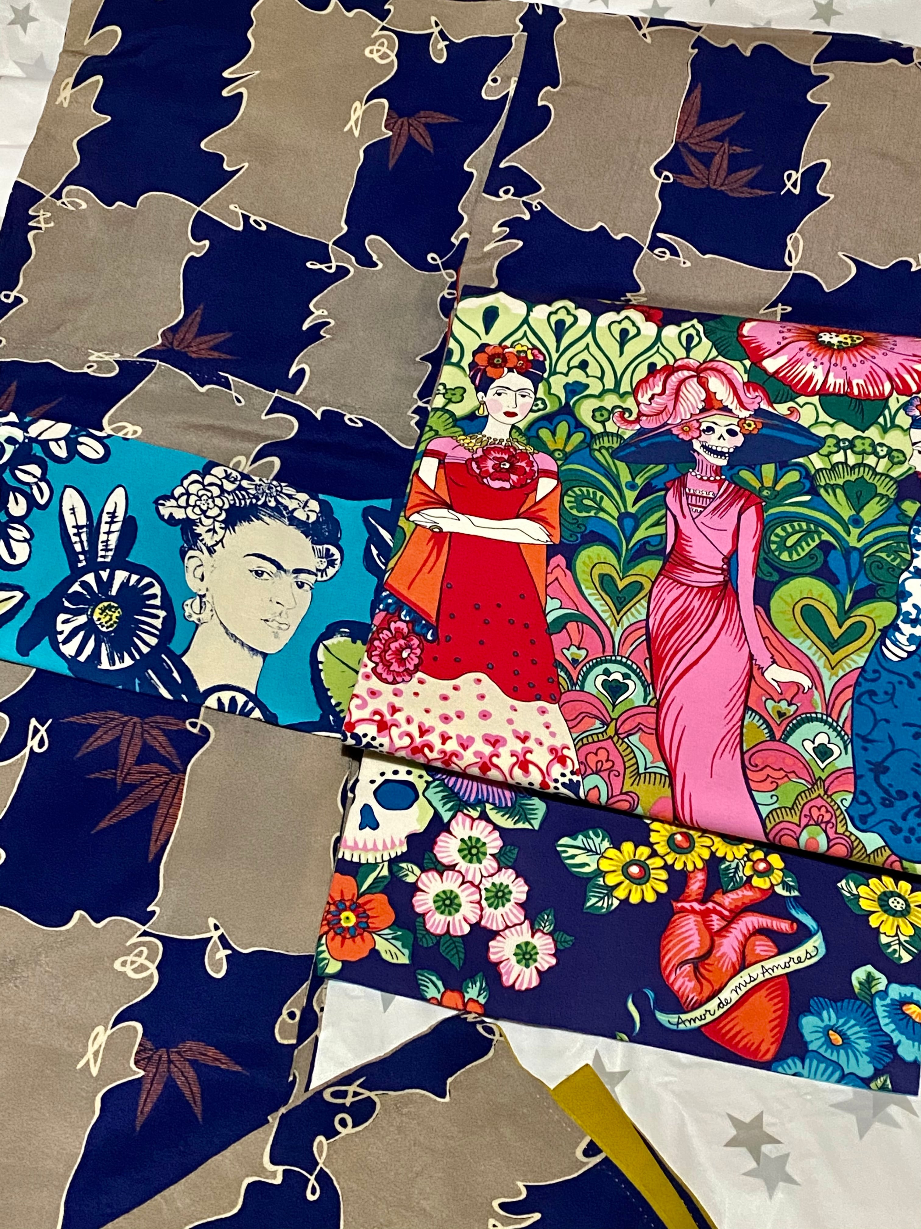 フリーダカーロモチーフのファブリックから作った名古屋帯です。